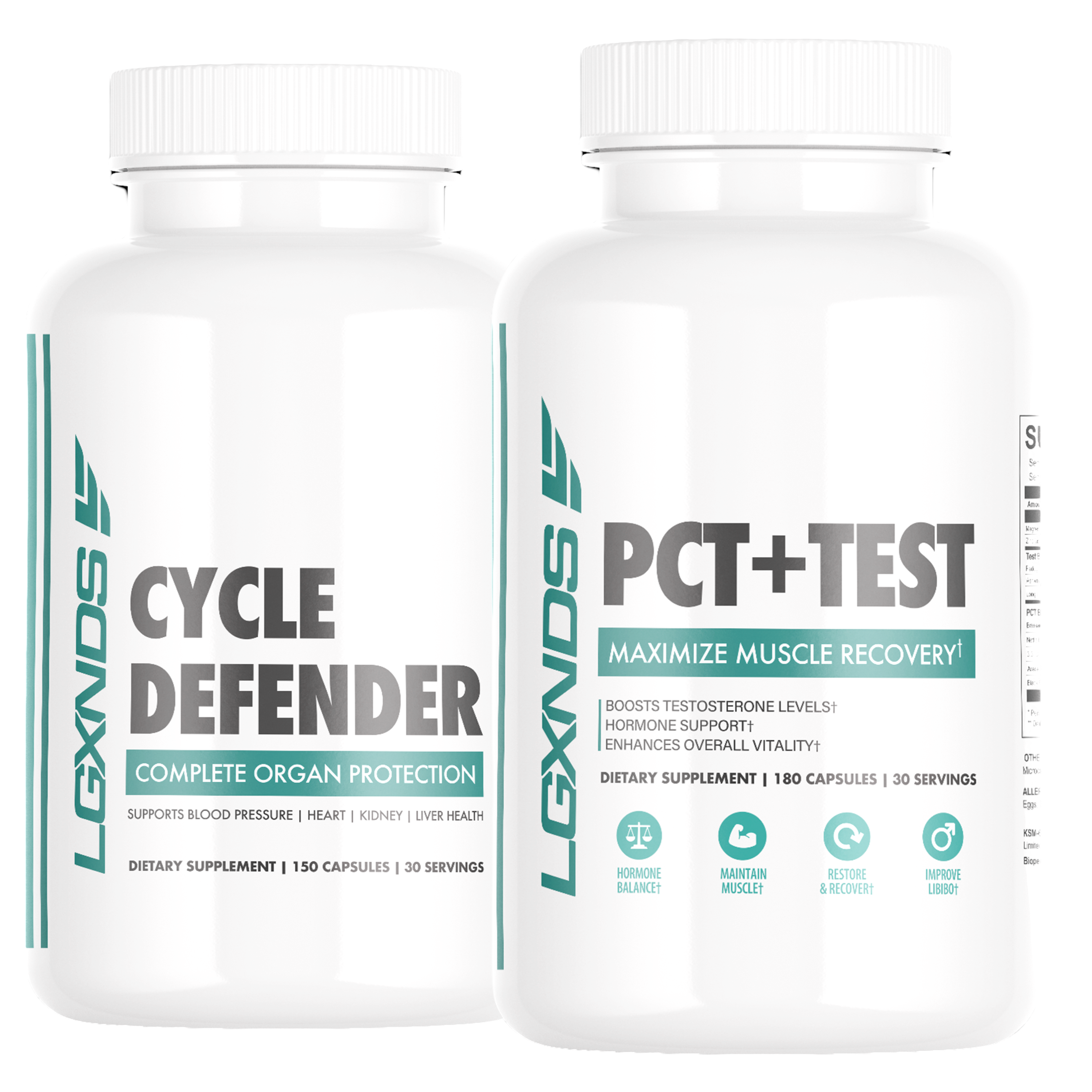 The LGXNDS Recovery & Reset Pack combines two essential formulas—Cycle Defender and PCT + TEST—to deliver complete cycle protection, hormonal recovery, and performance support. Built for athletes and lifters who want to safeguard their health and hold onto their hard-earned gains, this bundle covers everything from liver and kidney function to testosterone balance, recovery, and overall vitality.