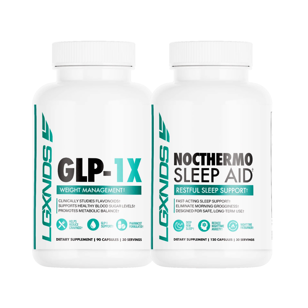 GLP-1X keeps appetite in check and blood sugar stable, while NocThermo promotes calm, reduces stress, and supports overnight thermogenesis. Together, they create an environment where your body can repair, recharge, and stay lean even while you sleep.
